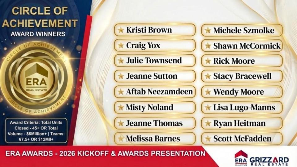 At the ERA Grizzard Real Estate 2026 Kickoff & Awards Presentation, I was honored to receive recognition that reflects a year of hard work, trusted relationships, and a deep commitment to serving our Central Florida community.